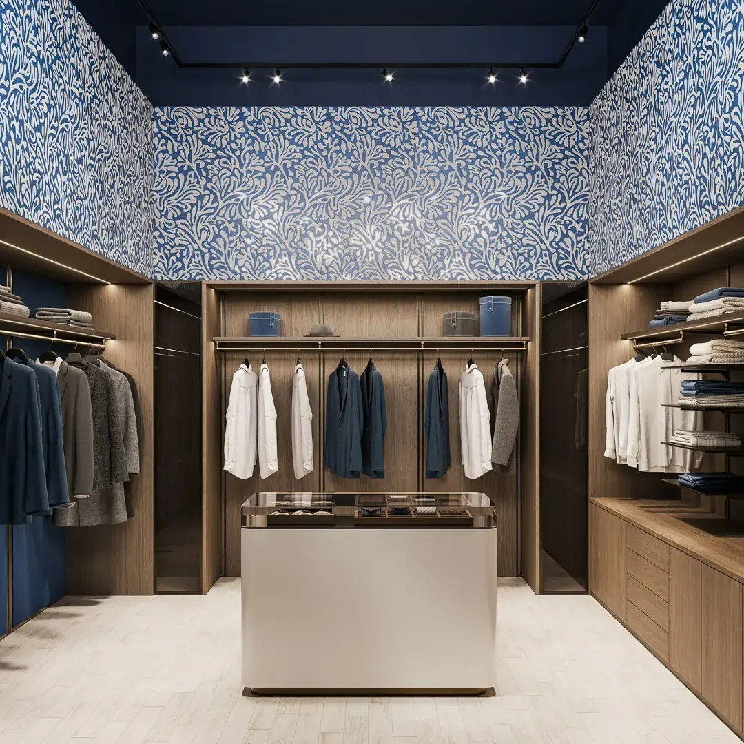 Анри Матисс в поздний период своего творчества заменил кисть ножницами и превратил цветные вырезки из раскрашенных листов в самостоятельный художественный язык. История этой серии – это история движения от живописи к композиции, где форма и цвет работают ясно и выразительно. Бело-голубая гамма декора подчёркнута специальным перламутровым составом, создающим на поверхности эффект мерцающих кристаллов.