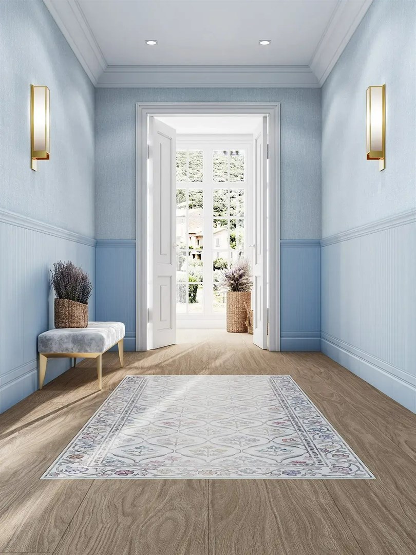 Керамический ковёр Флёр 119,5×238,5 идеально дополнит интерьер спален, гостиных, ванных, салонов красоты и камерных общественных интерьеров, где нужен спокойный декоративный акцент.