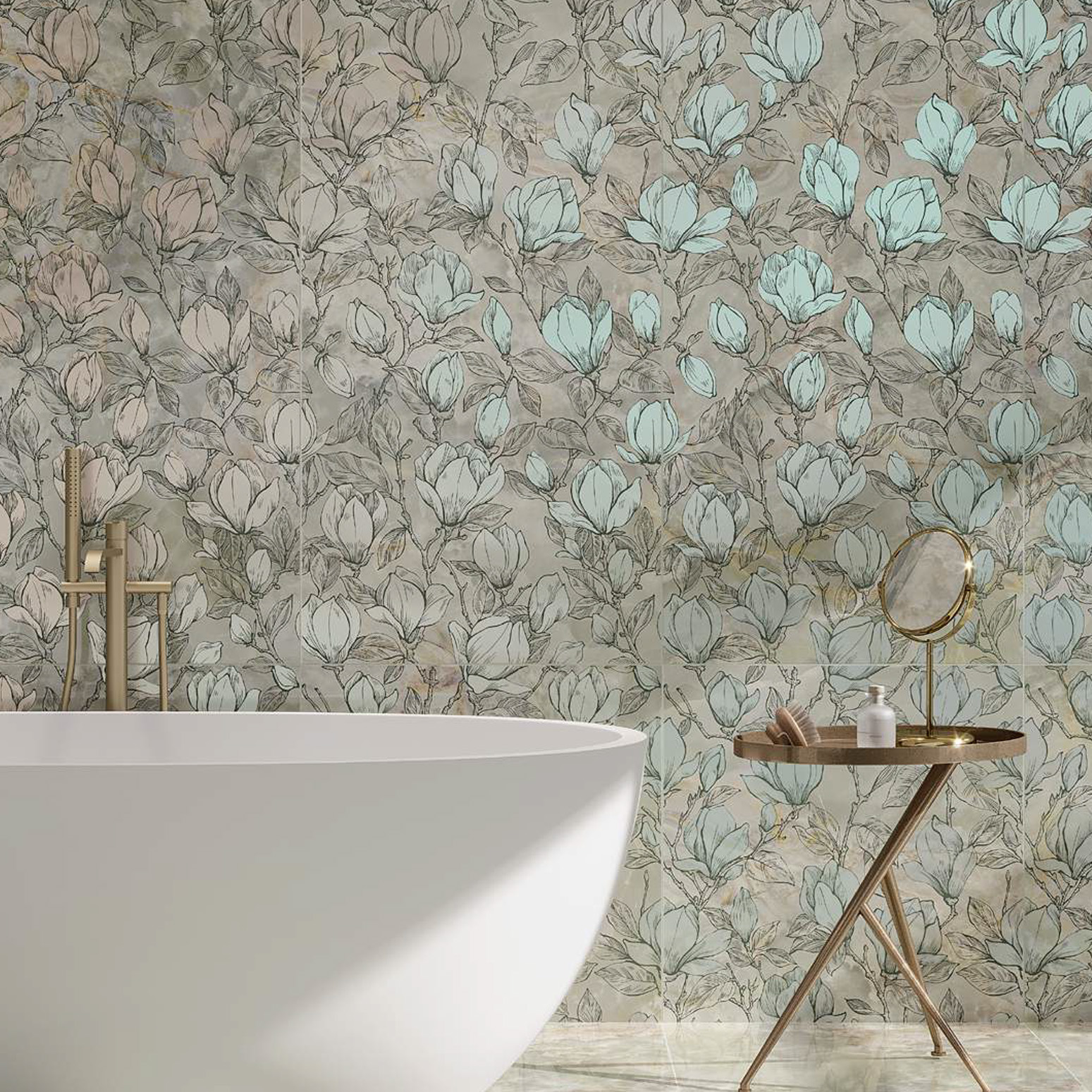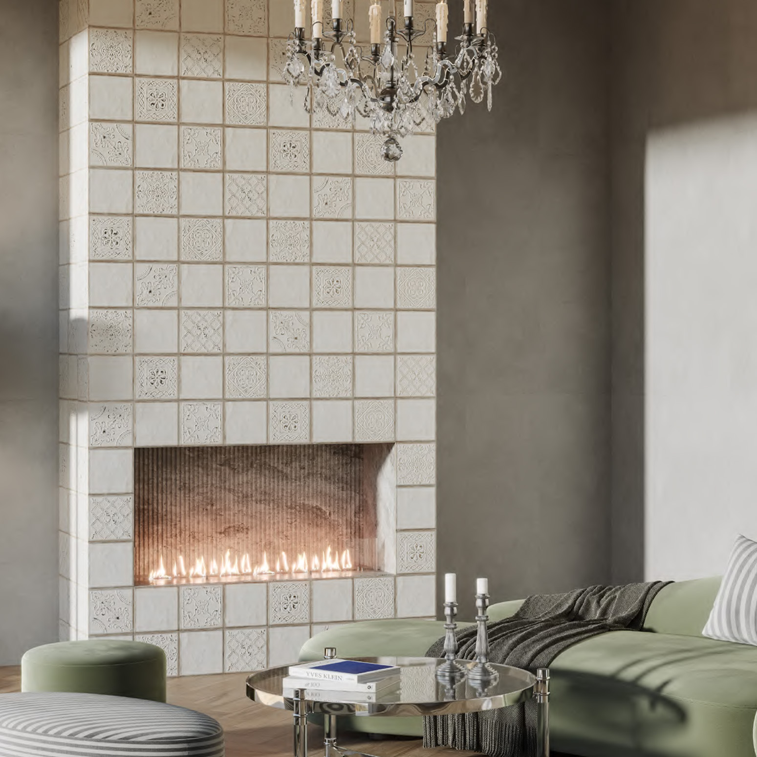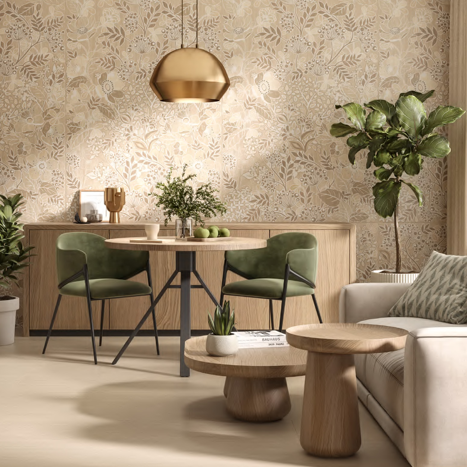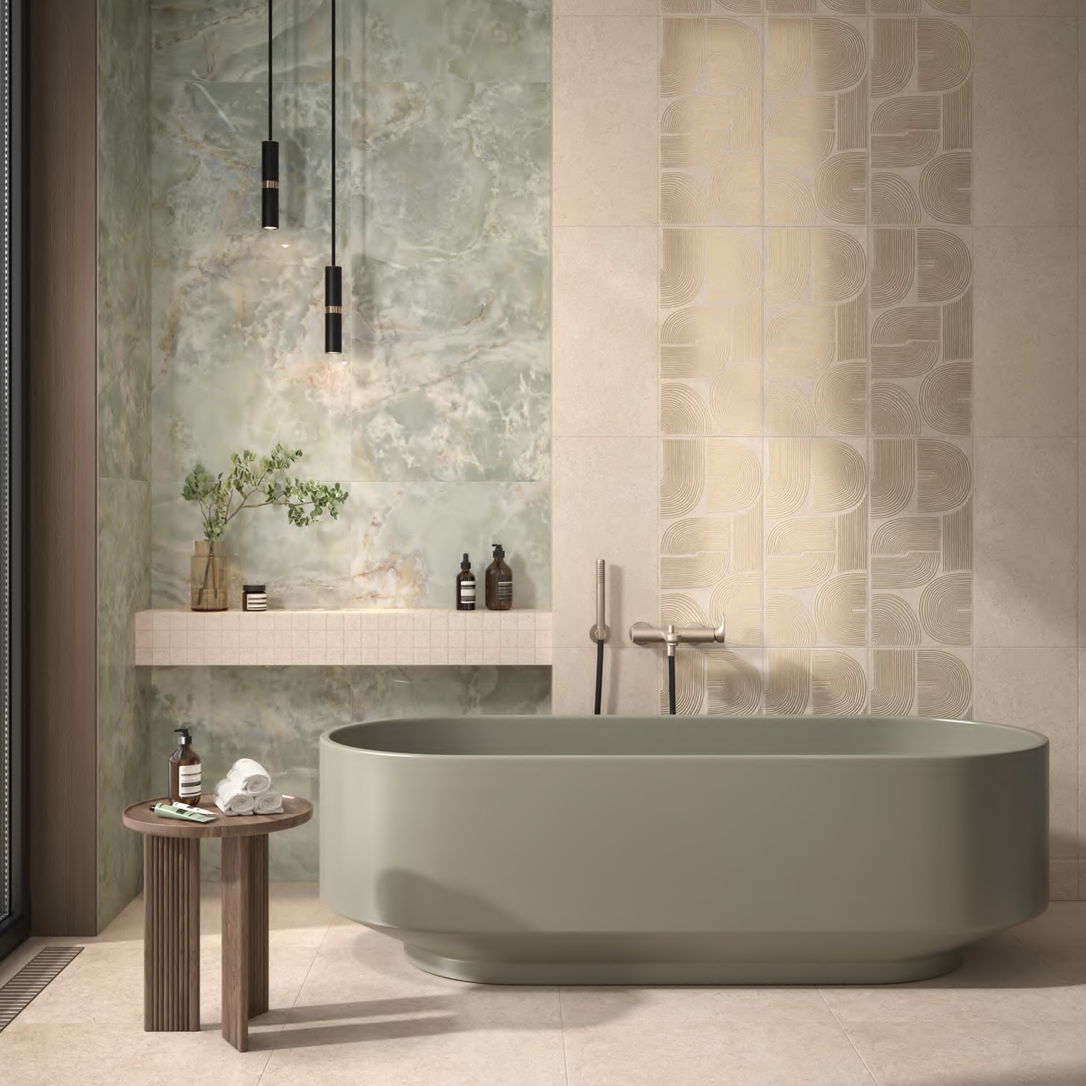 - фирменные обои, керамический гранит сверхкрупных форматов и персонализированные материалы.