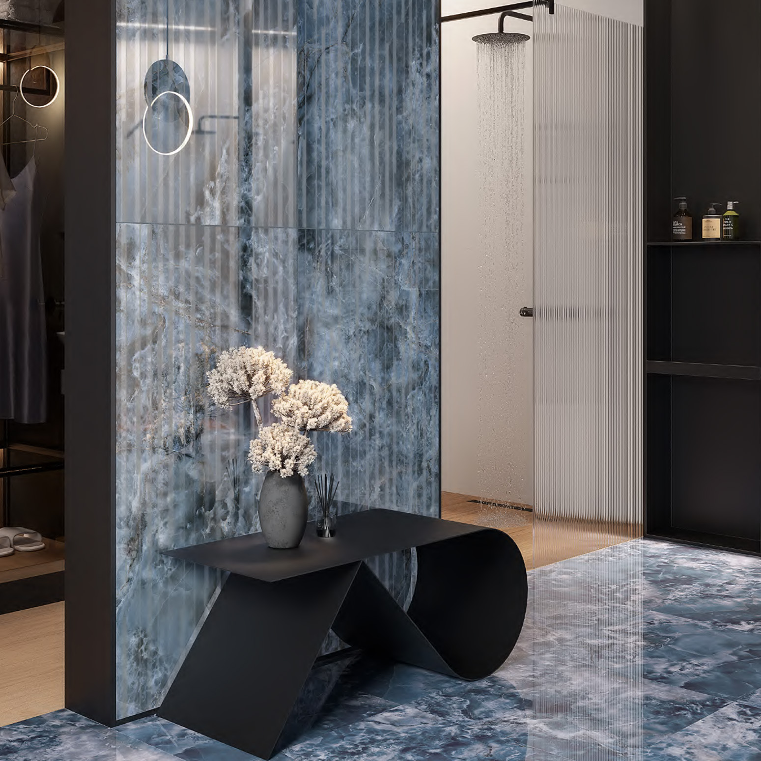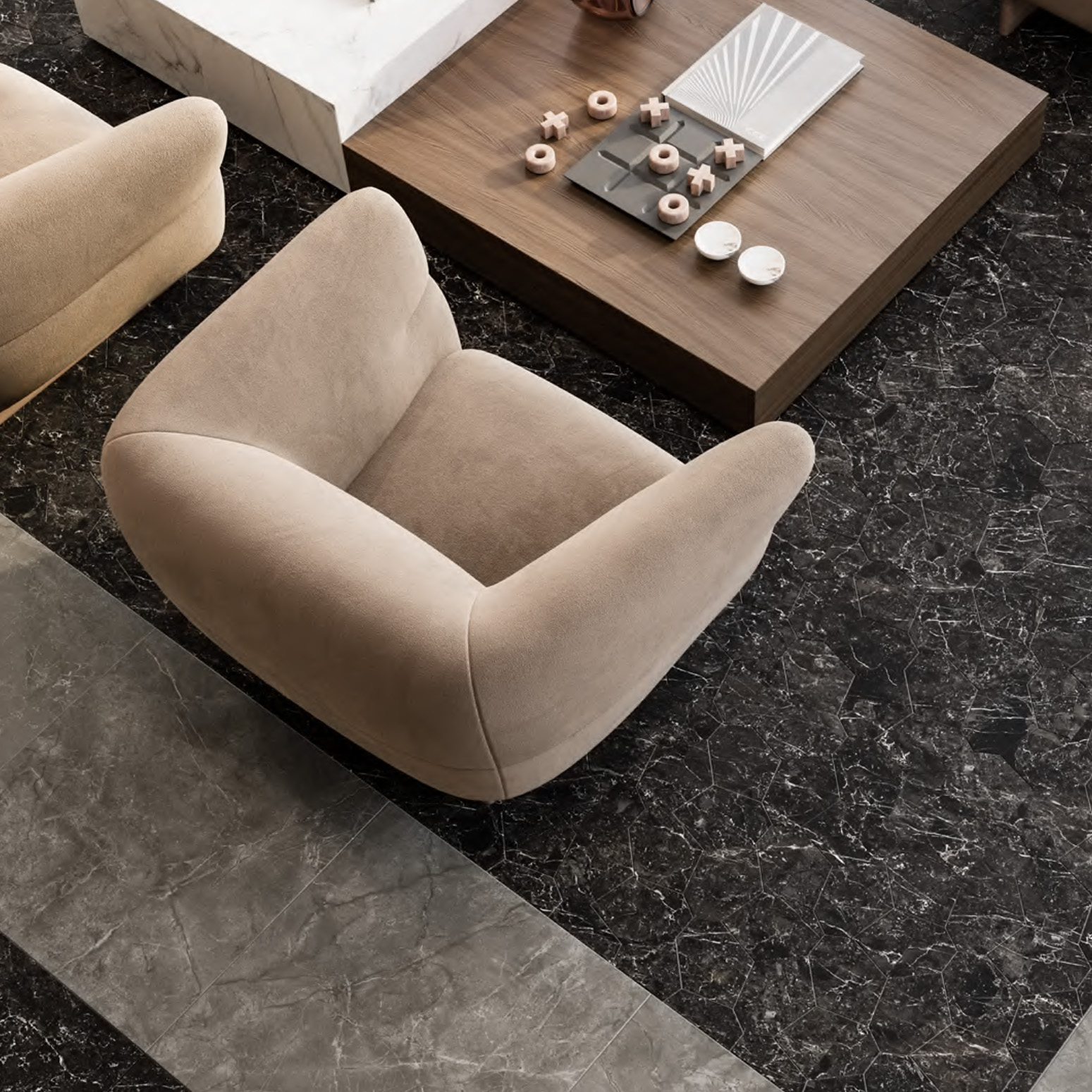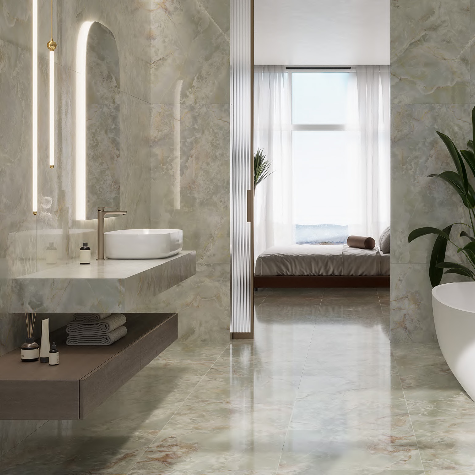 - фирменные обои, керамический гранит сверхкрупных форматов и персонализированные материалы.
