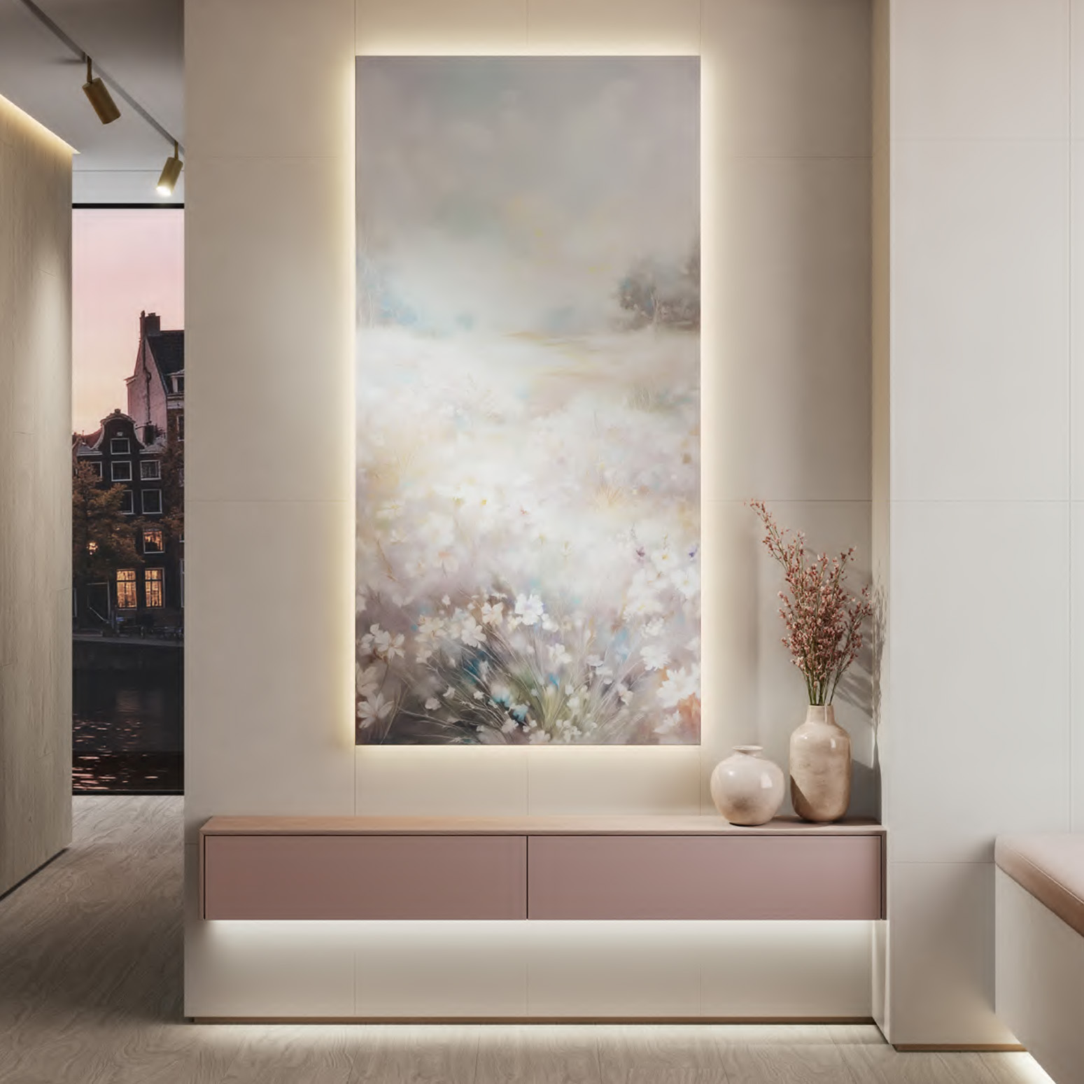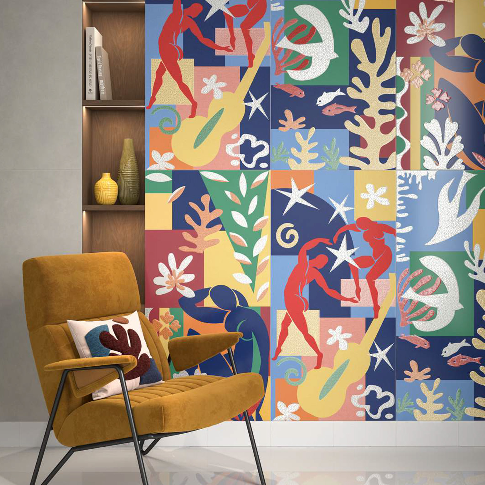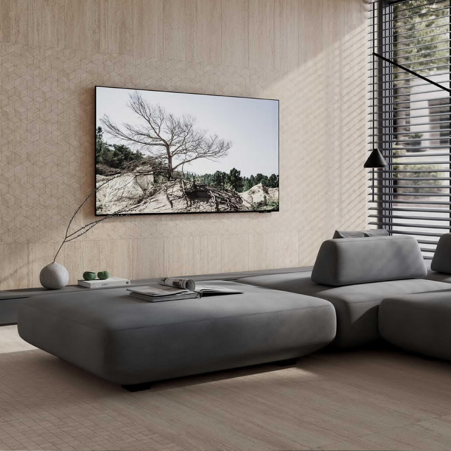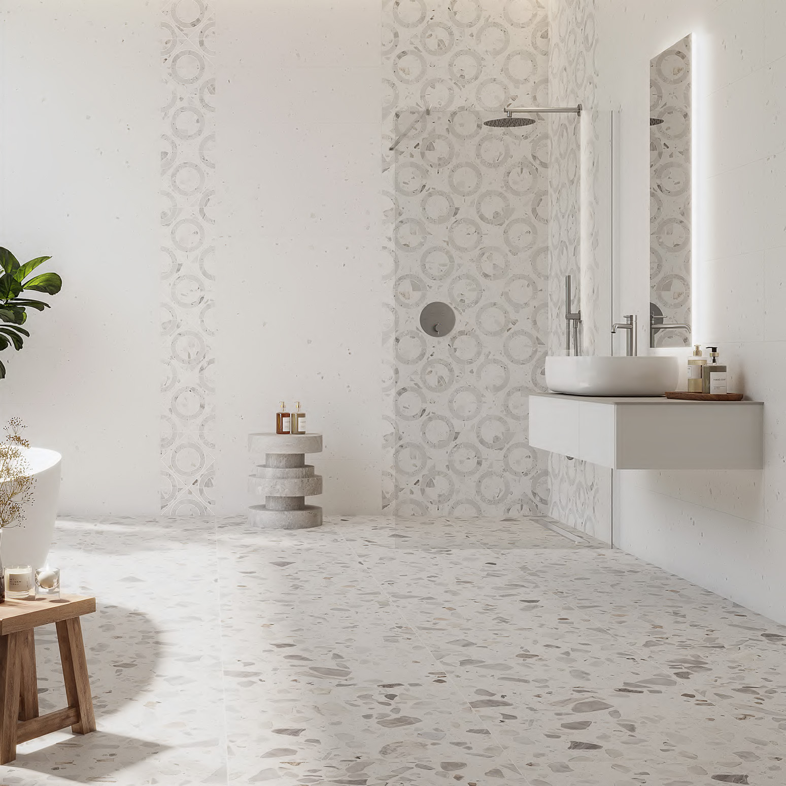 - фирменные обои, керамический гранит сверхкрупных форматов и персонализированные материалы.