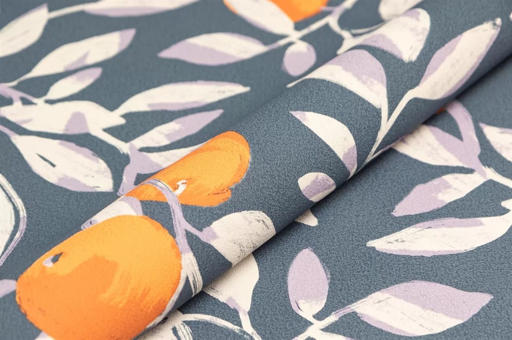 Наименование: KM8503 Обои виниловые Шафран мотив,синий, апельсины 1,06х10 (1, Т B) прямая стыковка